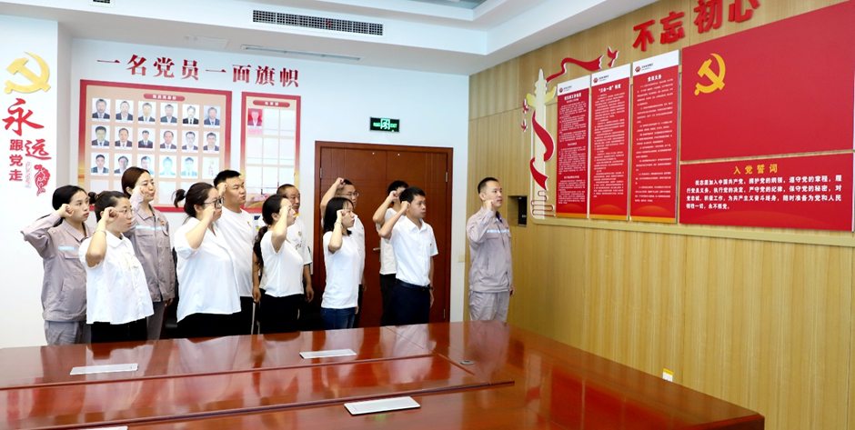 在会议室,国能大渡河沙坪发电有限公司党群办公室负责同志重点介绍了党建引领业务发展的特色经验,通过党建与主题教育、群团工作、作风纪律建设相融合,将党建工作融入工程建设、技术创新、团队管理等各个环节,实现党建与业务同频共振。乐山稀土党支部党员干部深受启发,双方就如何创新党建活动形式、提升党员队伍凝聚力、推动党建与业务深度融合等问题展开讨论。座谈会结束后,与会全体党员面向党旗,庄严宣誓,重温入党誓词,表达了对党的坚定信念和为党的事业奋斗终身的决心。